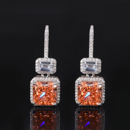 Full body S925 colored gemstone cutting technology is popular, with high carbon content, and the main component carbon element is the same as real diamonds. Highly simulated diamond Redion cutting color diamond fat square earring main stone 10 * 12