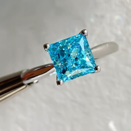 Full body S925 colored gemstone cutting technology is popular, with high carbon content, and the main component carbon element is the same as real diamonds. Highly simulated diamond Redion cut princess square earrings ring main stone 7 * 7 earrings female