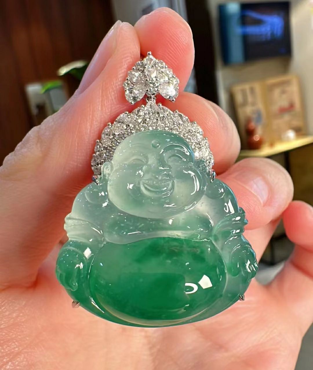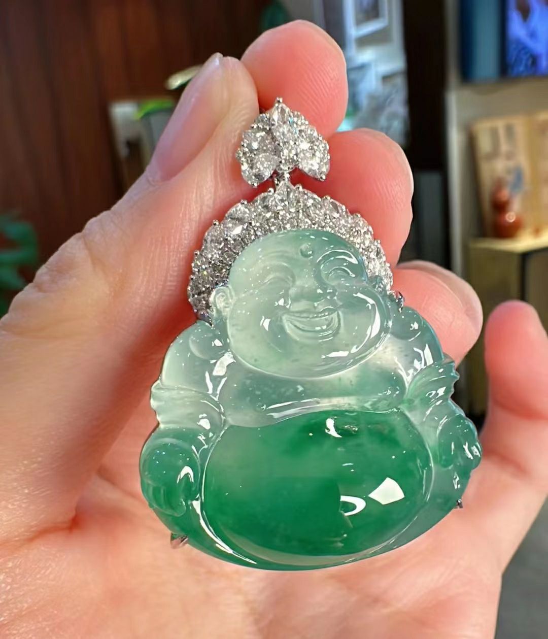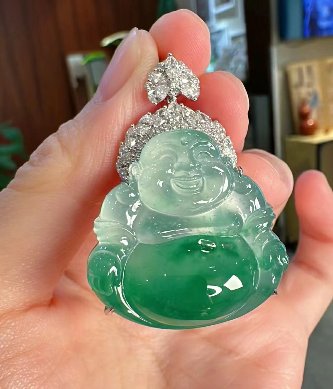 Ice seed jade, Ruyi jade, Laughing Buddha, Guanyin Emperor, Green jade, Jade Buddha pendant pendant, Giant Buddha, 18K gold inlay