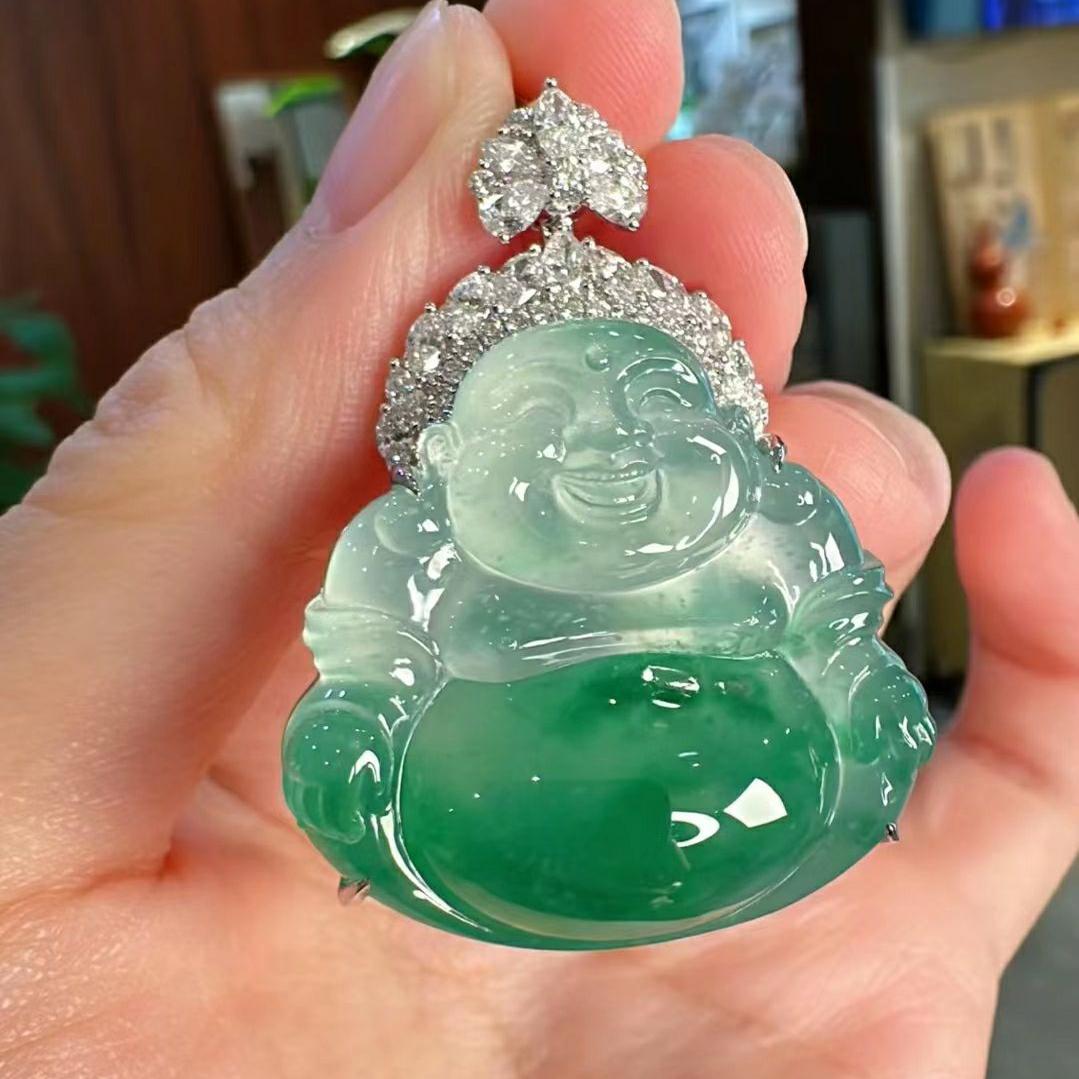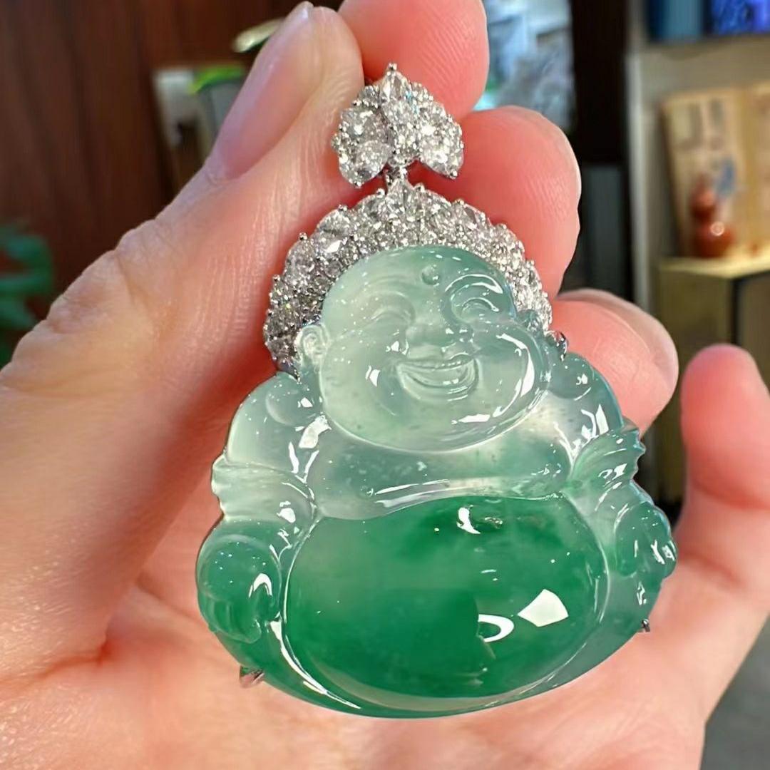 Ice seed jade, Ruyi jade, Laughing Buddha, Guanyin Emperor, Green jade, Jade Buddha pendant pendant, Giant Buddha, 18K gold inlay
