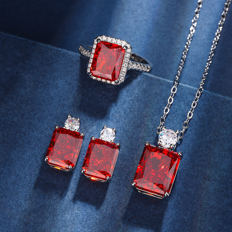 Caibao's top-notch cutting technology is a best-selling product with high carbon content, and its main component carbon element is the same as that of real diamond. Highly simulated diamond Redion cut diamond ice flower cut copper inlaid princess square high-end set 12 * 12-10 * 10