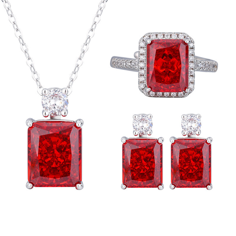 Ice Flower Cut Chinese Red Pendant with Chain, Ice flower cut Chinese red earrings, Ice Flower Cut Chinese Red and Green Ring