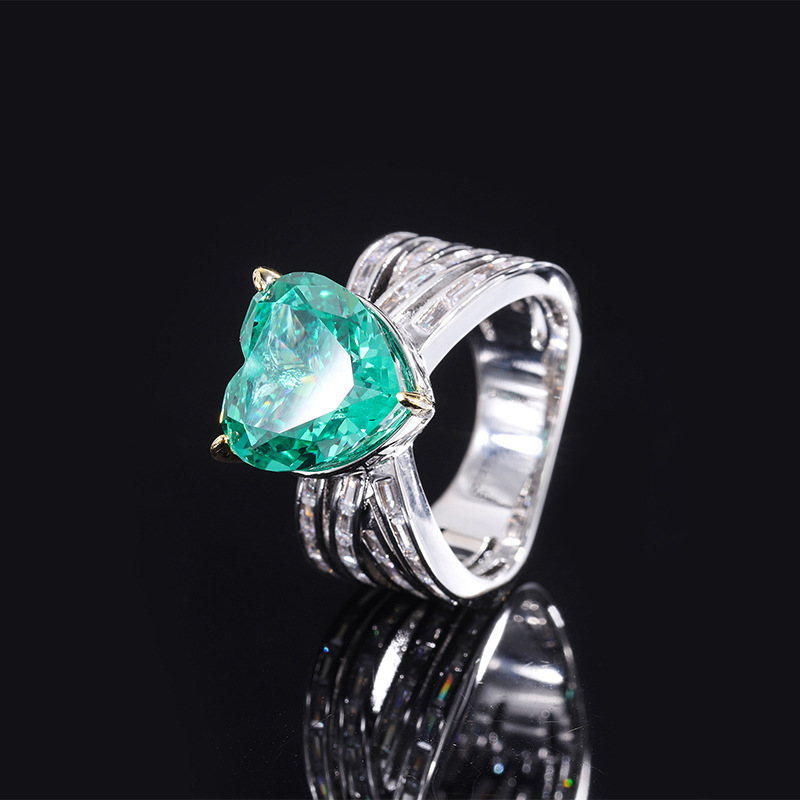 Full body S925 colored gemstone cutting technology is popular, with high carbon content, and the main component carbon element is the same as real diamonds. Highly simulated diamond Redion cut grandmother green heart-shaped women’s set 12 * 12 8 * 8