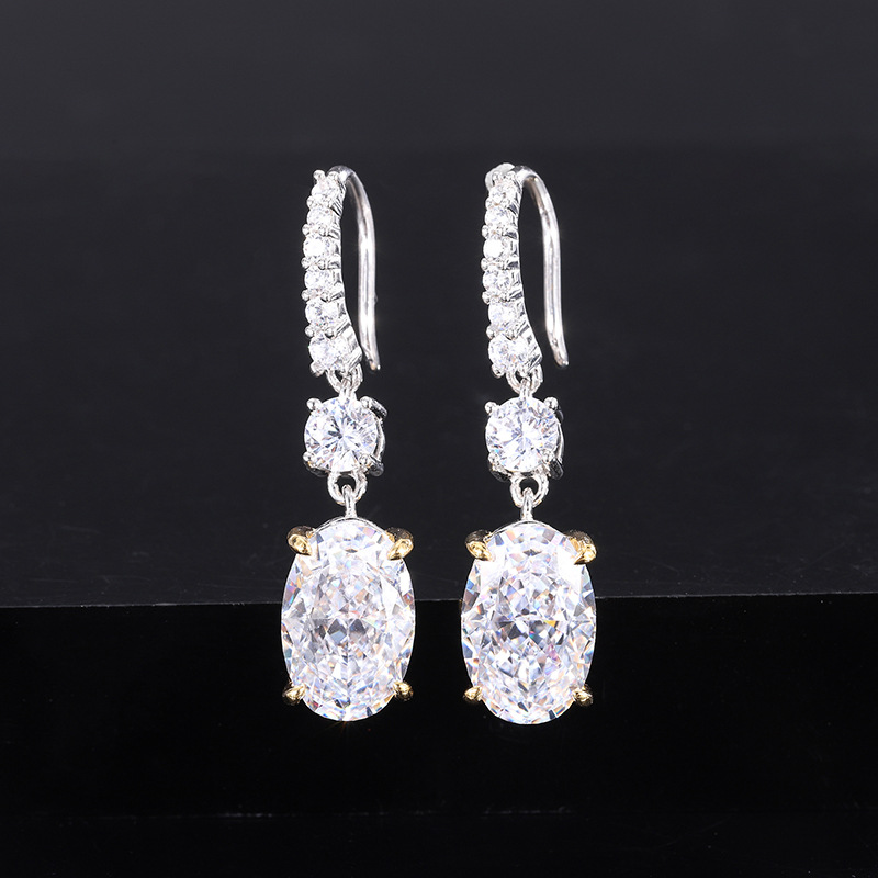 Full body S925 colored gemstone cutting technology is popular, with high carbon content, and the main component carbon element is the same as real diamonds. Highly simulated diamond Redion cut high-end texture Dan shaped 8 * 12 women’s earrings earrings