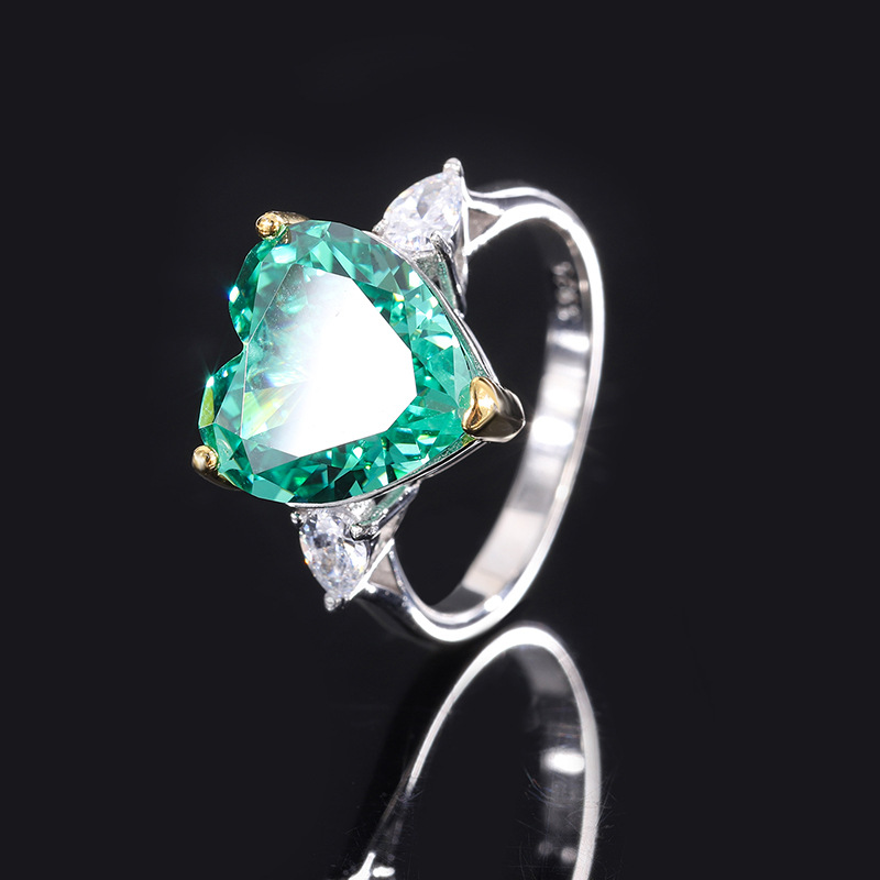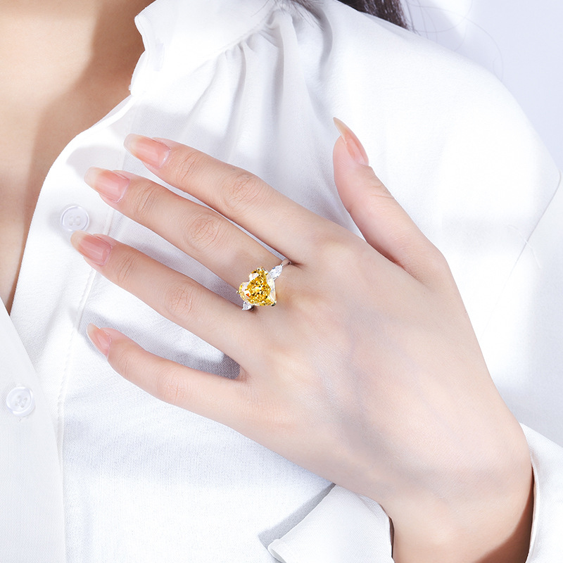 Full body S925 colored gemstone cutting technology is popular, with high carbon content, and the main component carbon element is the same as real diamonds. Highly simulated diamond Redion cut high-end texture heart-shaped women’s ring main stone 12 * 12