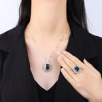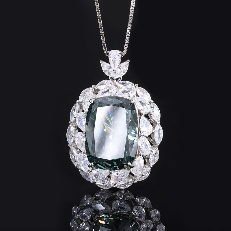 Full body S925 colored gemstone cutting technology is popular, with high carbon content, and the main component carbon element is the same as real diamonds. Highly simulated diamond Redion cut premium texture Redion explosive flash light luxury pendant set for women 13 * 18-12 * 16