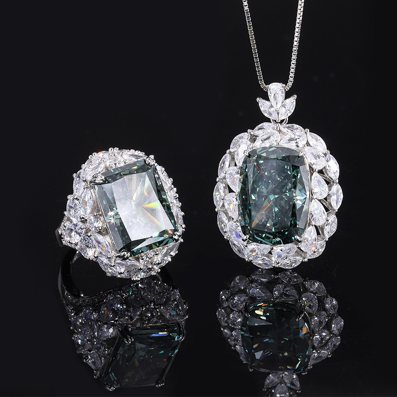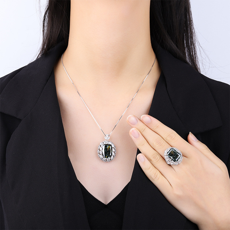 Home Ring Full body S925 colored gemstone cutting technology is popular, with high carbon content, and the main component carbon element is the same as real diamonds. Highly simulated diamond Redion cut premium texture Redion explosive flash light luxury pendant set for women 13 * 18-12 * 16