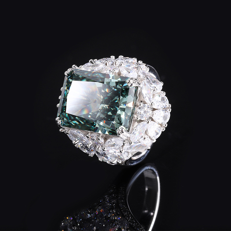 Full body S925 colored gemstone cutting technology is popular, with high carbon content, and the main component carbon element is the same as real diamonds. Highly simulated diamond, Redion cut, premium texture, mint green manure square, 5g, minimalist ring, main stone 8 * 10