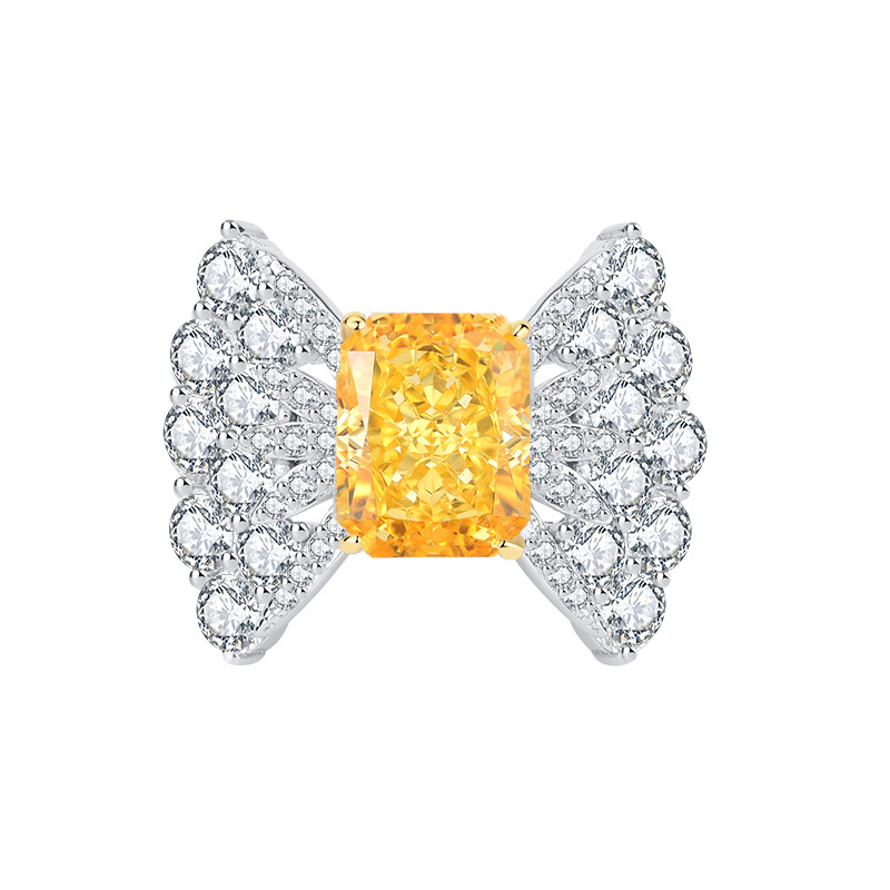 Full body S925 colored gemstone cutting technology is popular, with high carbon content, and the main component carbon element is the same as real diamonds. Highly simulated diamond Redion cut square 8 * 10 bow geometric texture women’s ring diamond