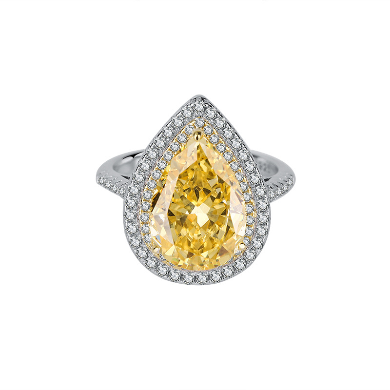 Home Ring Full body S925 colored gemstone cutting technology is popular, with high carbon content, and the main component carbon element is the same as real diamonds. Highly simulated diamond Redion cut yellow diamond droplet shaped finish bracelet ring 10 * 14