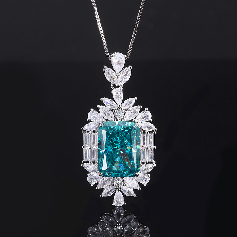 Full body S925 colored gemstone cutting technology is popular, with high carbon content, and the main component carbon element is the same as real diamonds. Highly simulated diamond Redon cut mint green pendant ring two-piece set