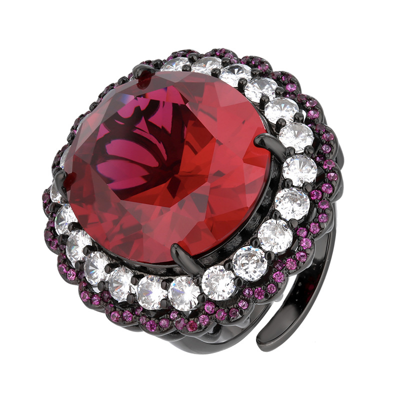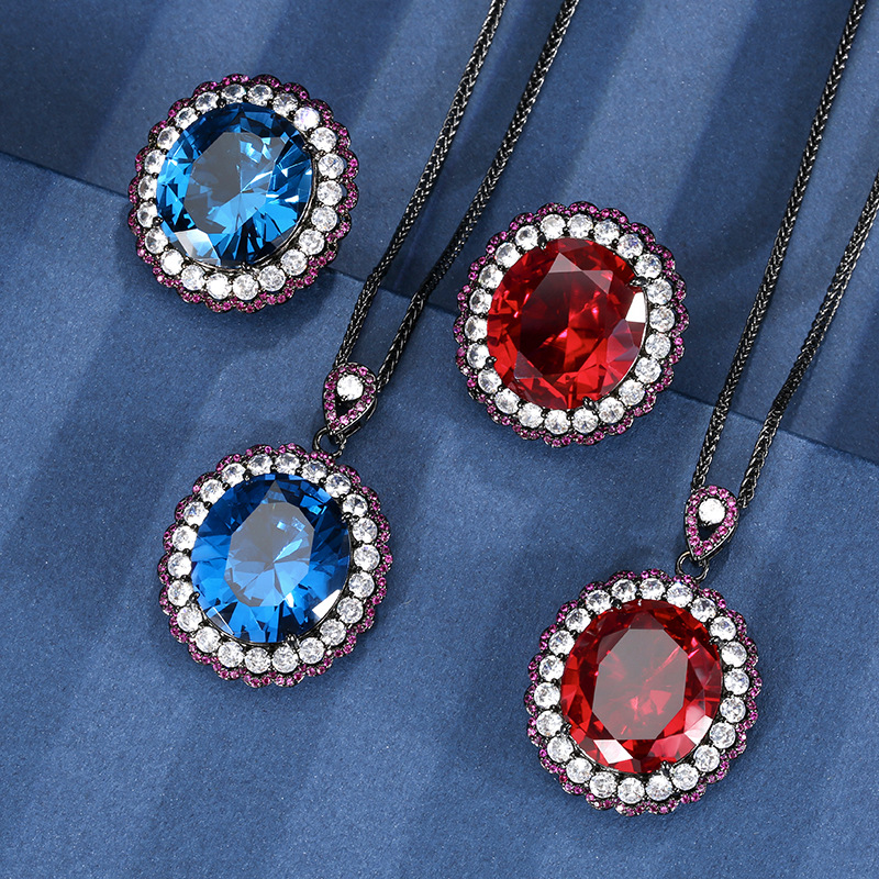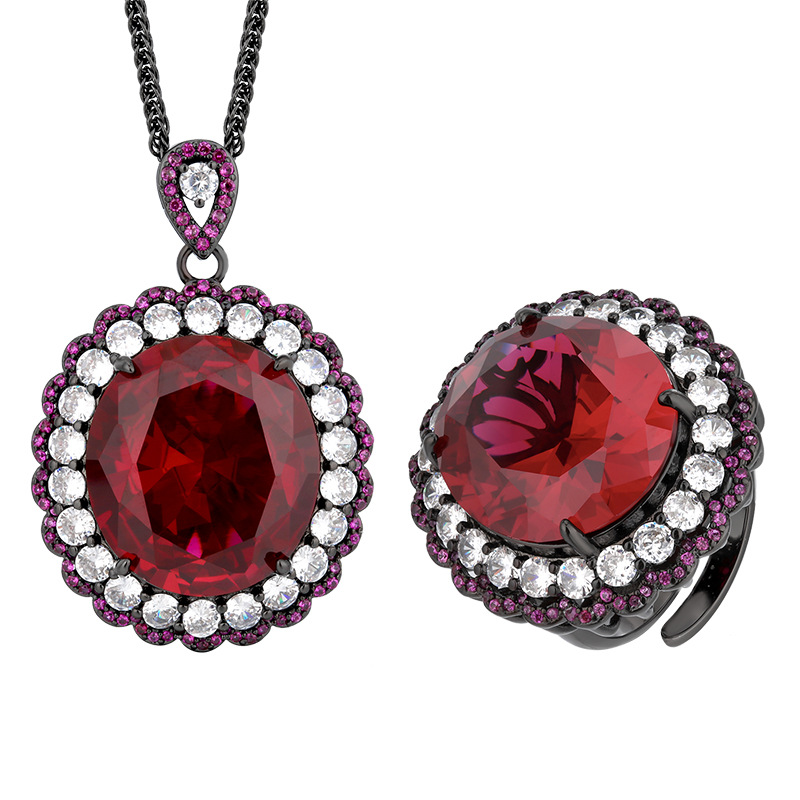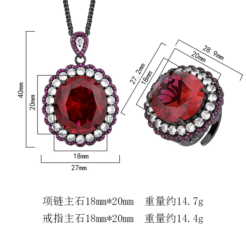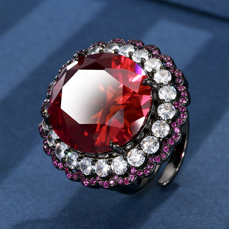 High carbon content, with the main component being the same carbon element as real diamonds. Highly simulated diamond, Redion cut, high-quality texture, true color treasure, simulated red corundum, egg shaped temperament, retro set, main stone 13 * 18-7 * 9