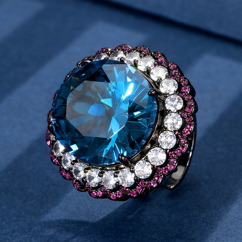 Home Ring High carbon content, with the main component being the same carbon element as real diamonds. Highly simulated diamond, Redion cut, high-quality texture, genuine color, copper base, gold-plated simulated corundum, light luxury black gold set, main stone 18 * 20