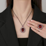 High carbon content, with the main component being the same carbon element as real diamonds. Highly simulated diamond, Redion cut, high-quality texture, true color treasure, simulated red corundum, egg shaped temperament, retro set, main stone 13 * 18-7 * 9 $134.00 Original price was: $134.00.$133.00Current price is: $133.00.