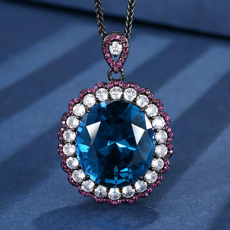 Black gold red corundum pendant with Xiao Bang chain, Black gold blue pointed crystal pendant with Xiao Bang chain, Black gold red corundum ring, Black gold blue pointed crystal ring