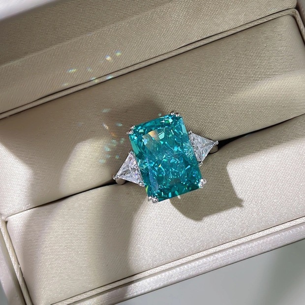 High carbon content, with the main component being the same carbon element as real diamonds. Highly simulated diamond Redion cut high-quality texture real color treasure bracelet ring rectangular 10 * 14 closed color treasure women’s ring