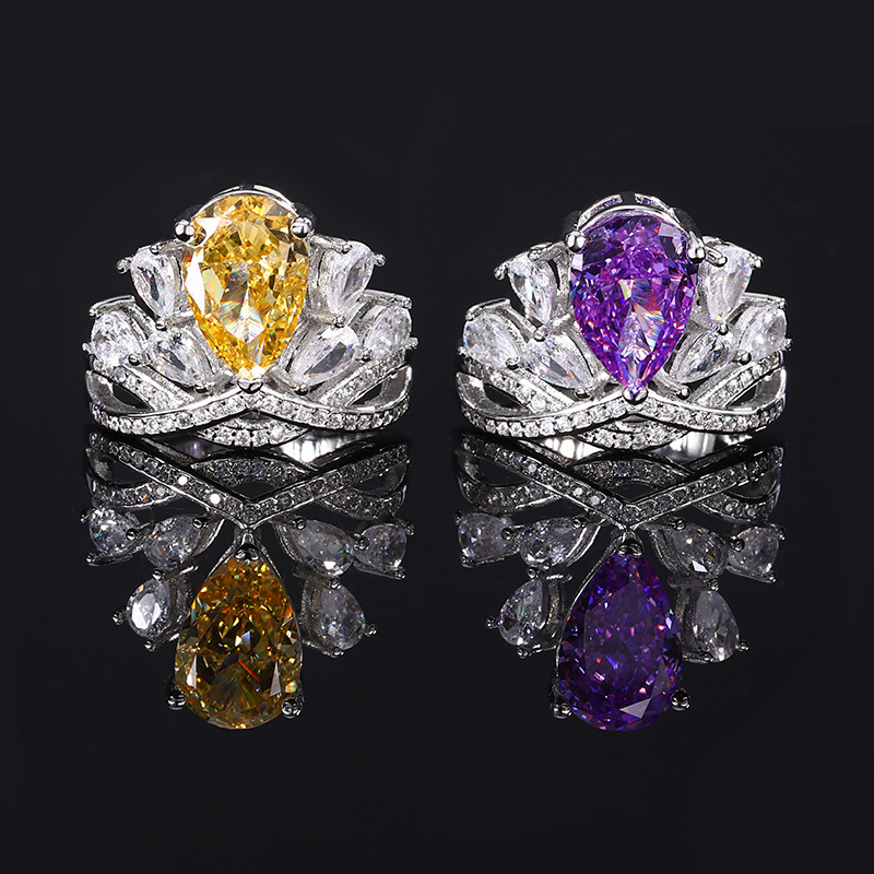 Home Ring High carbon content, with the main component being the same carbon element as real diamonds. Highly simulated diamond Redion cut high-quality texture real color treasure ice flower cut design crown ring for women 8 * 12