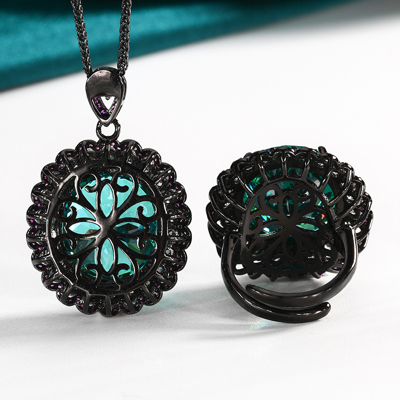 Black Gold Para Green Pendant with Xiao Bang Chain, Black Gold Para Green Ring