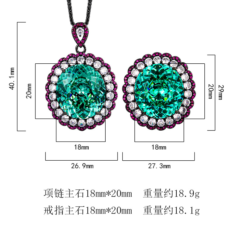 High carbon content, with the main component being the same carbon element as real diamonds. Highly simulated diamond, Redion cut, high-quality texture, true color, precious green, light luxury, black gold set, main stone 18 * 20