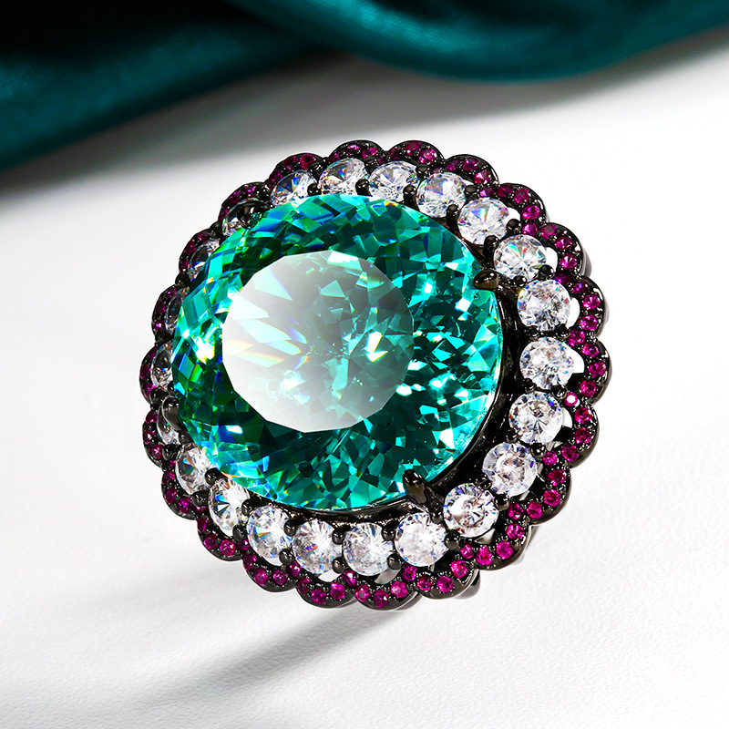 Home Ring High carbon content, with the main component being the same carbon element as real diamonds. Highly simulated diamond, Redion cut, high-quality texture, true color, precious green, light luxury, black gold set, main stone 18 * 20
