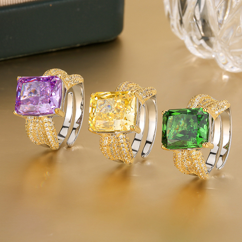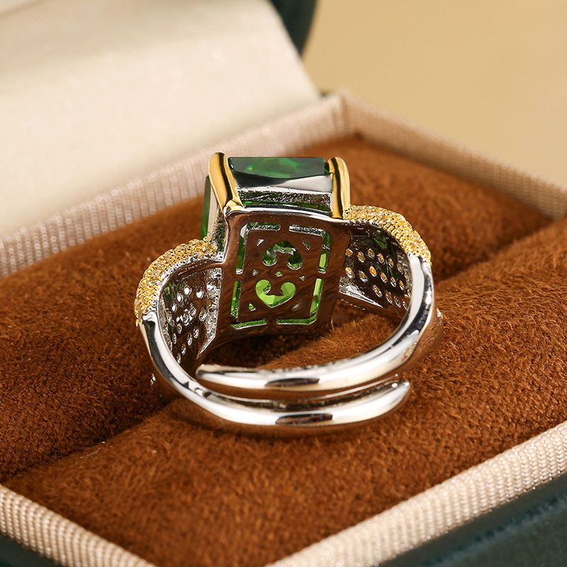 Home Ring High carbon content, with the main component being the same carbon element as real diamonds. Highly simulated diamond Redion cut high-quality texture true color treasure emerald square diamond copper inlaid ring for women 10 * 12