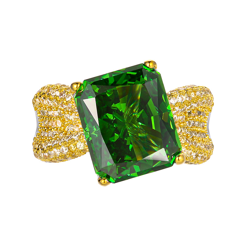 High carbon content, with the main component being the same carbon element as real diamonds. Highly simulated diamond Redion cut high-quality texture true color treasure emerald square diamond copper inlaid ring for women 10 * 12