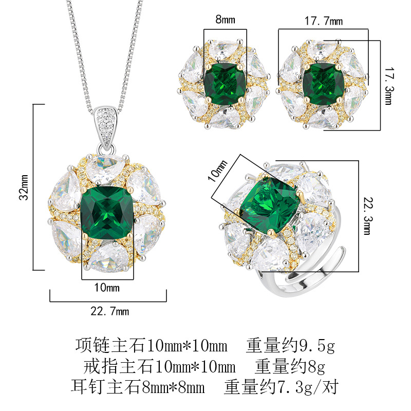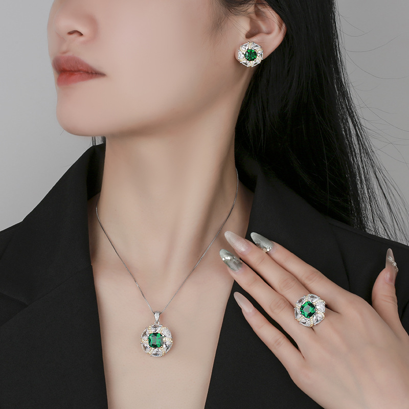 Pendant with box chain, ring, Earrings |