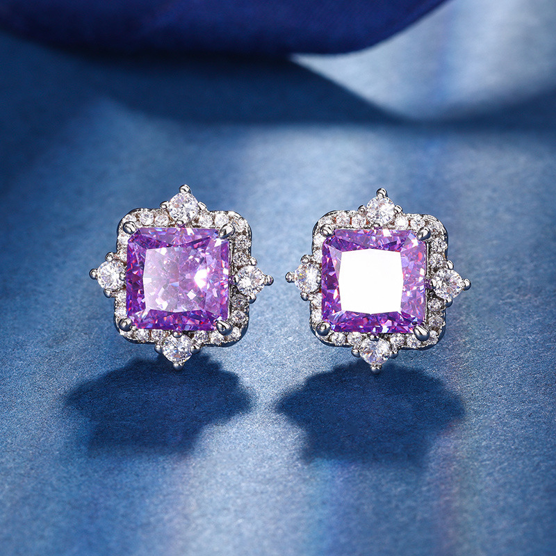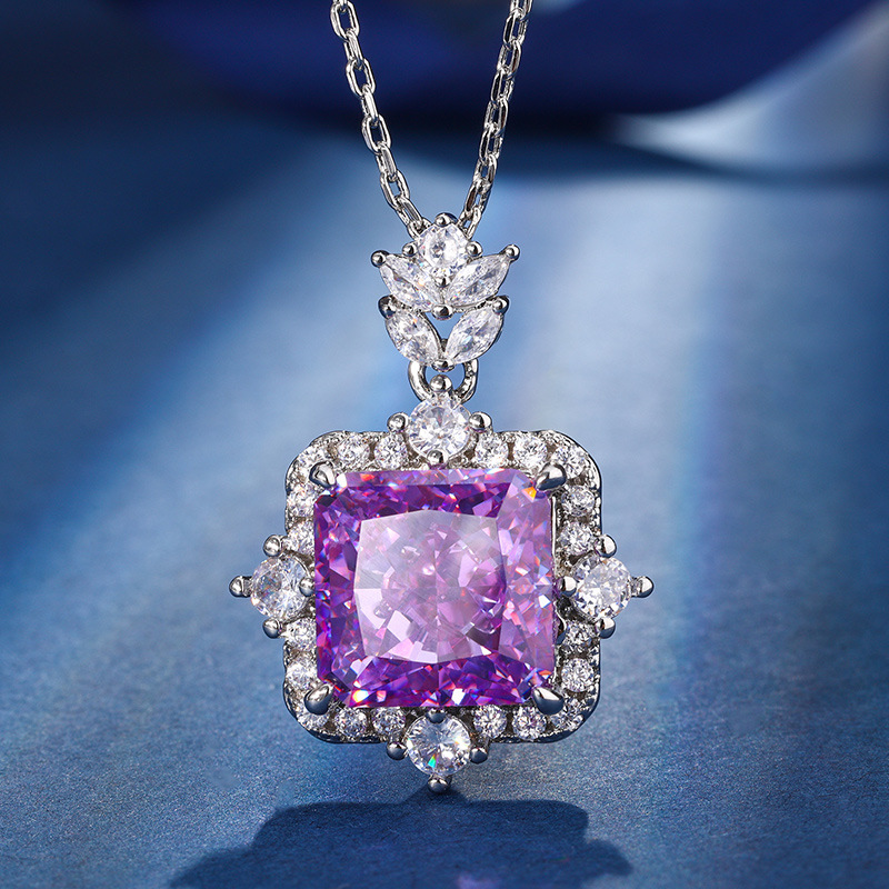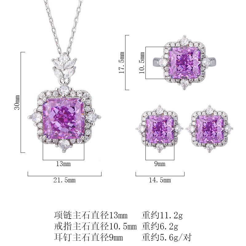 Ice flower cut purple diamond pendant with chain, Ice Flower Cut Purple Diamond Ring, Ice flower cut purple diamond earrings |