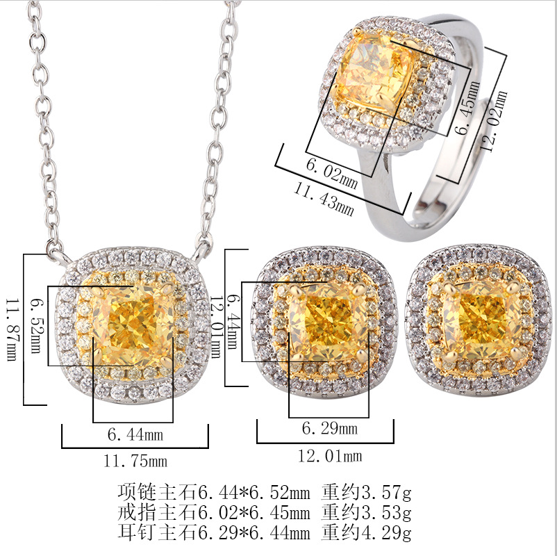 Ice Flower Cut Yellow Diamond Pendant with Chain, Ice Flower Cut Yellow Diamond Ring, Ice flower cut yellow diamond earrings |