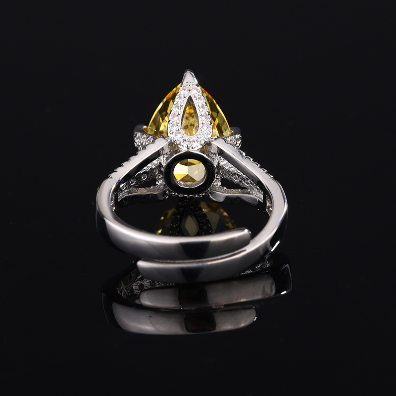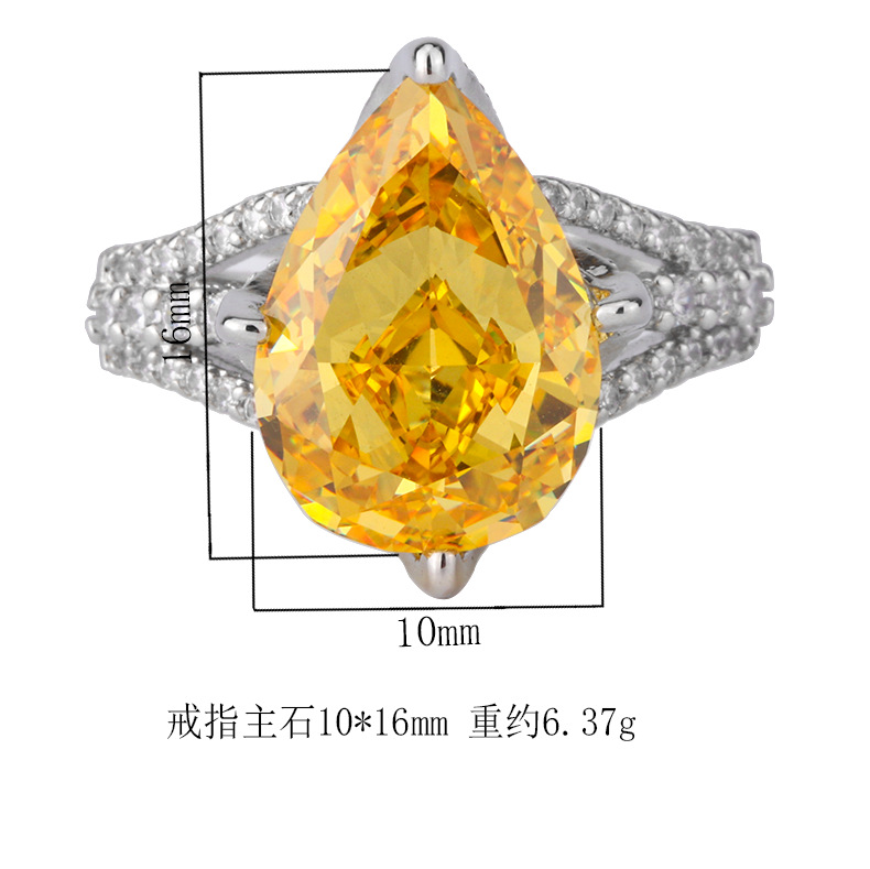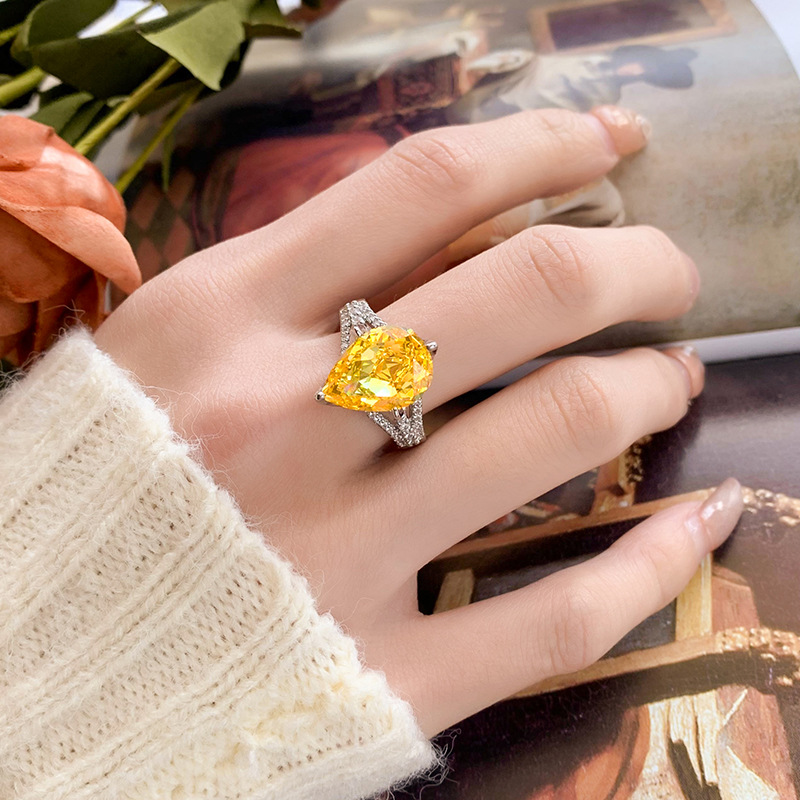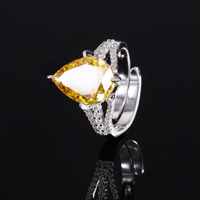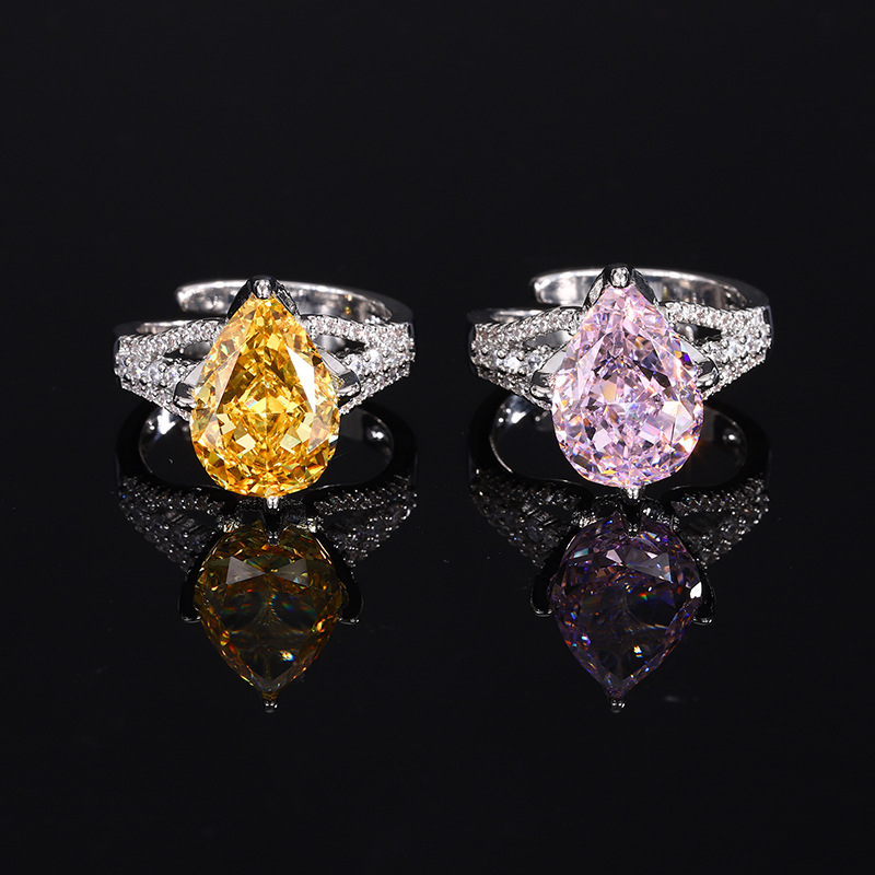 Home Ring High carbon content, with the main component being the same carbon element as real diamonds. Highly simulated diamond Redion cutting high-quality texture genuine color treasure ice flower cutting water droplet copper setting temperament simple ring for women 10 * 14