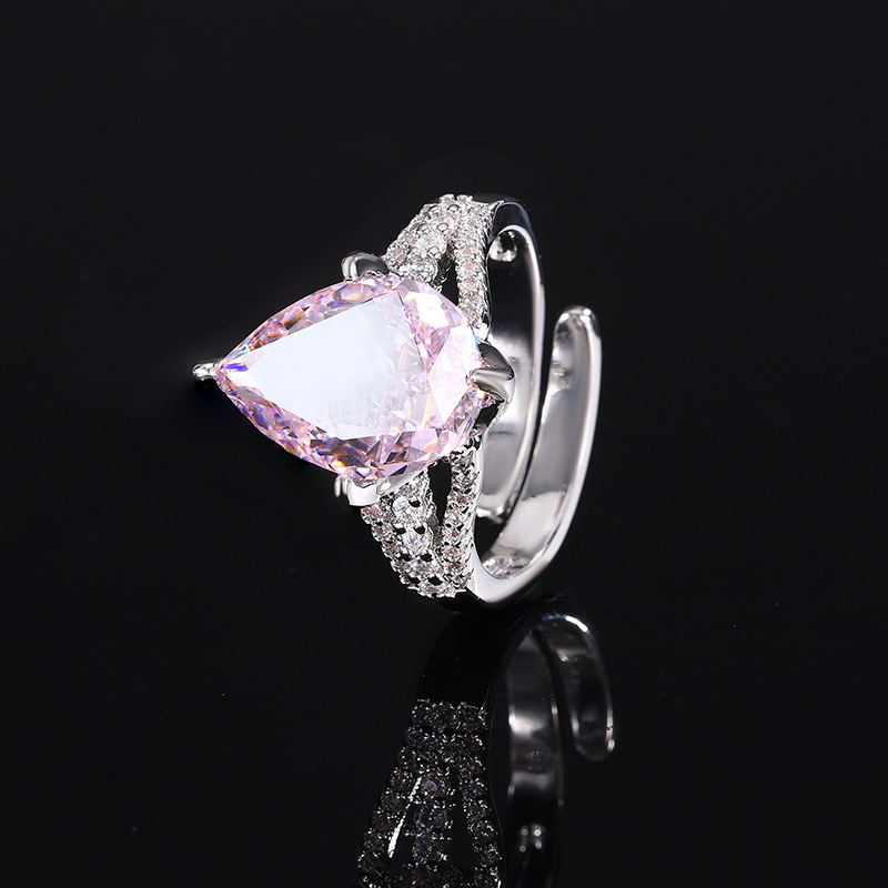 High carbon content, with the main component being the same carbon element as real diamonds. Highly simulated diamond Redion cutting high-quality texture genuine color treasure ice flower cutting water droplet copper setting temperament simple ring for women 10 * 14