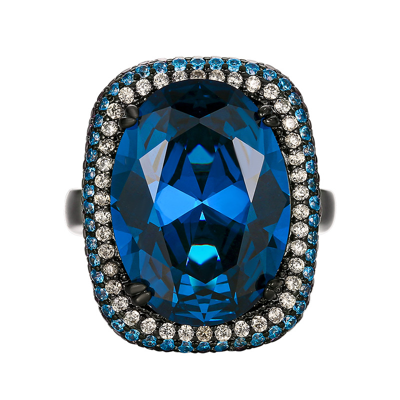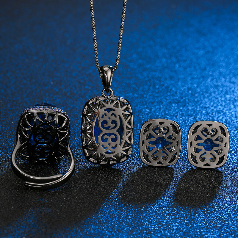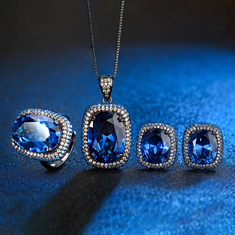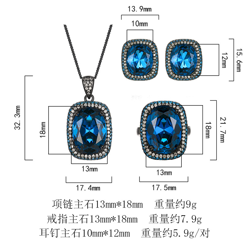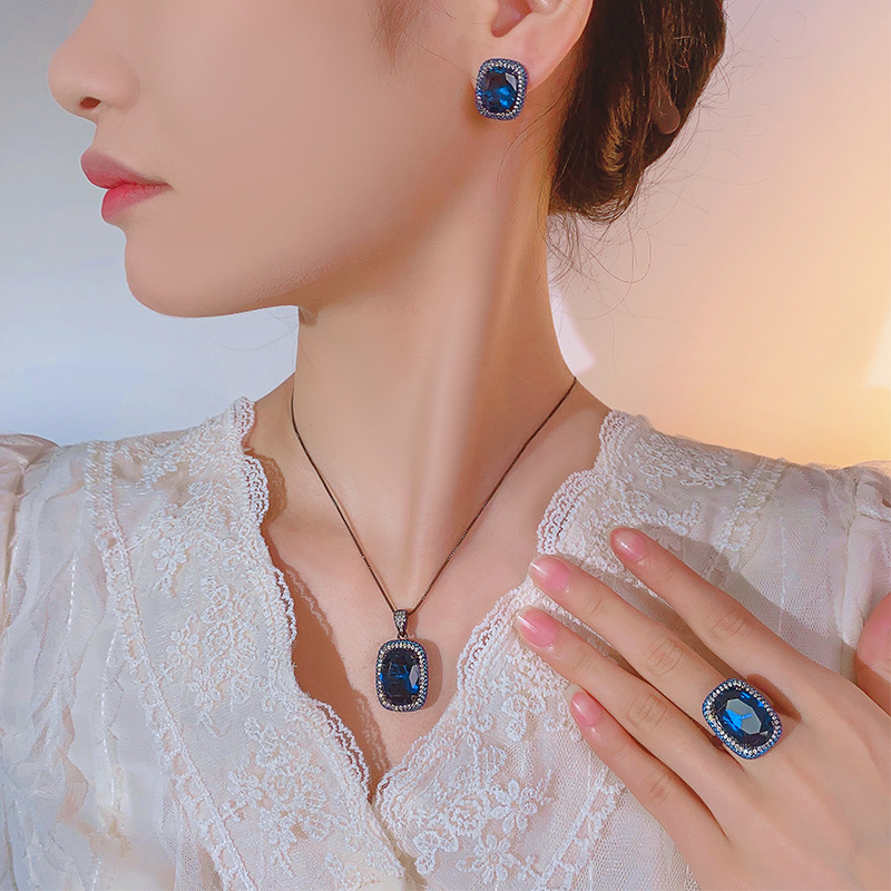 Black gold blue pointed crystal pendant with chain, Black gold blue pointed crystal ring, Black gold blue pointed crystal earrings |
