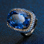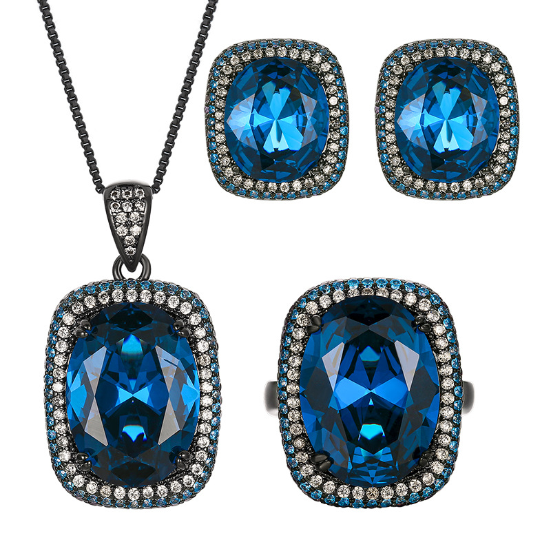 Black gold blue pointed crystal pendant with chain, Black gold blue pointed crystal ring, Black gold blue pointed crystal earrings |