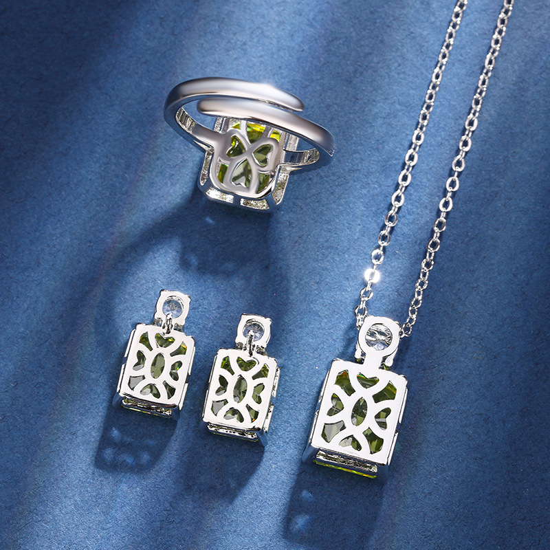 Apple green pendant with chain, Apple green earrings, Apple Green Ring |