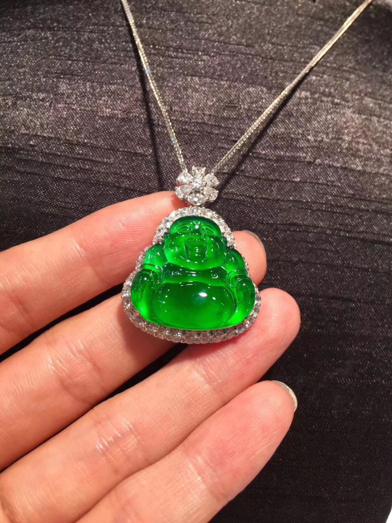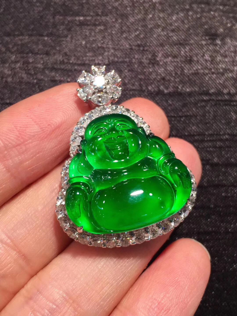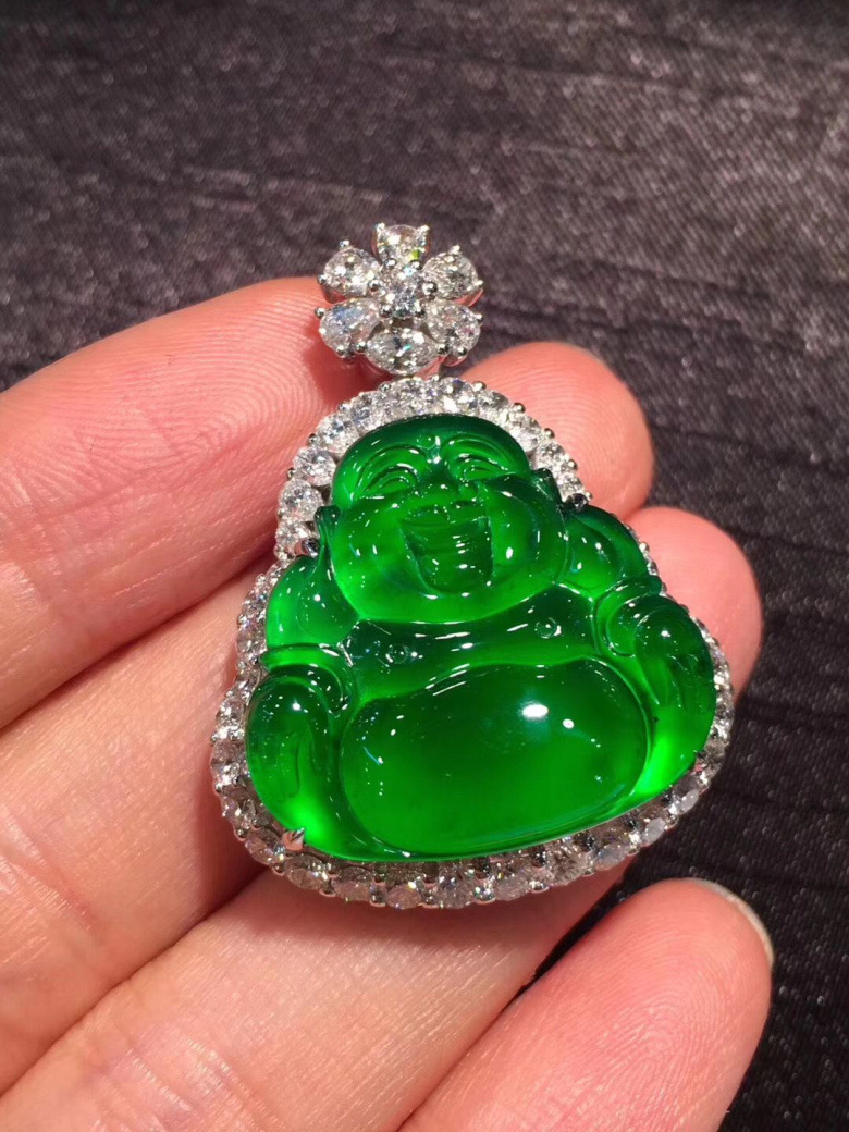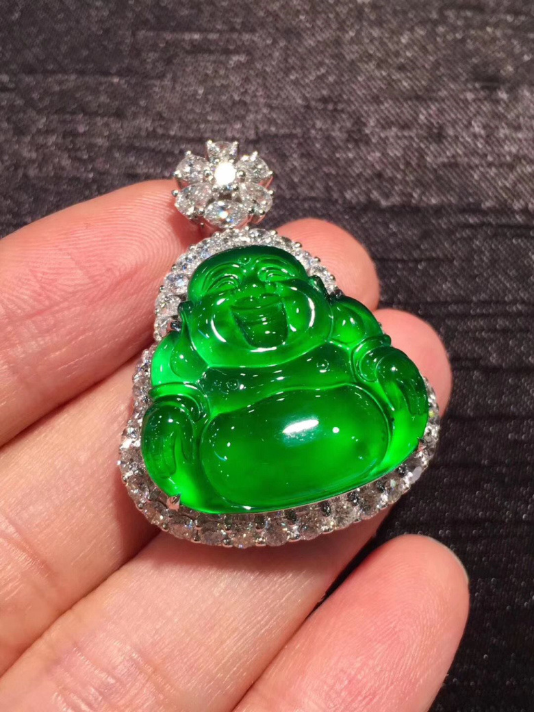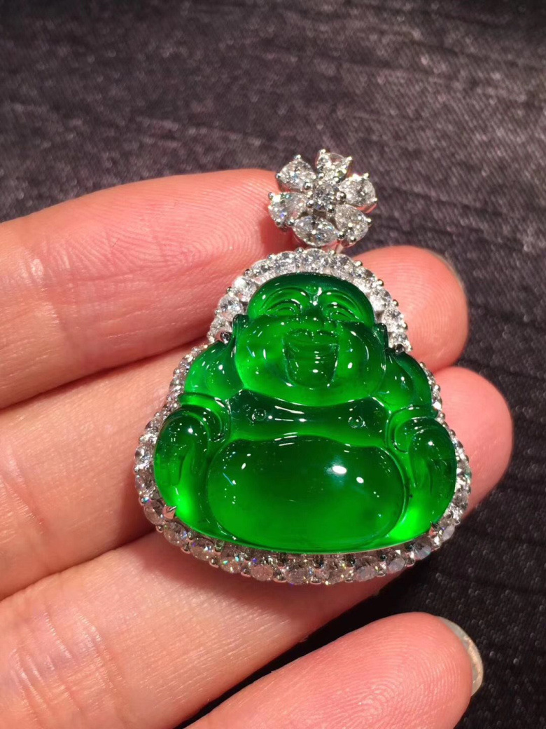 Ice seed jade, Ruyi jade, Laughing Buddha, Guanyin Emperor, Green jade, Jade Buddha pendant pendant, Giant Buddha, 18K gold inlay