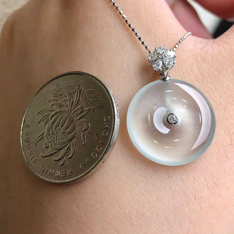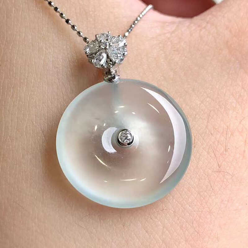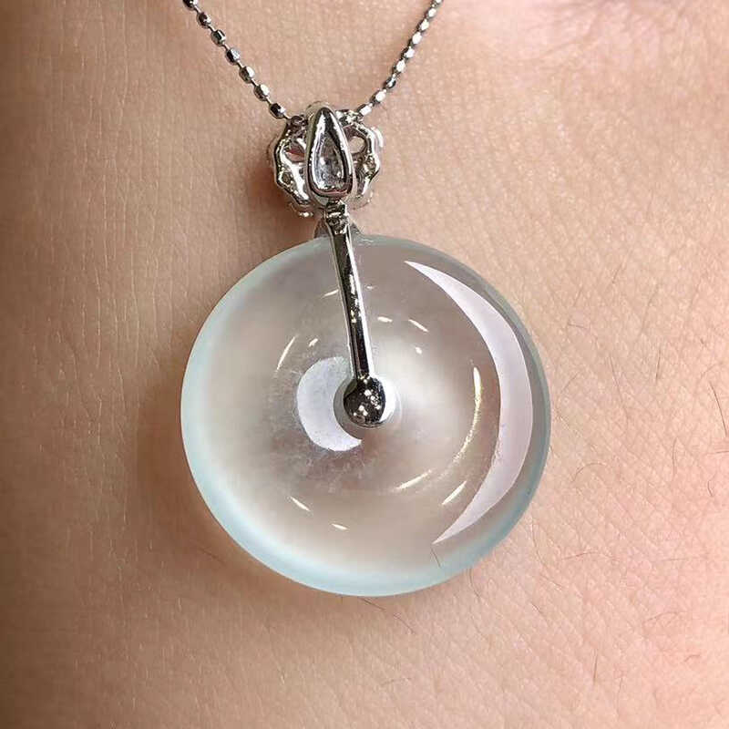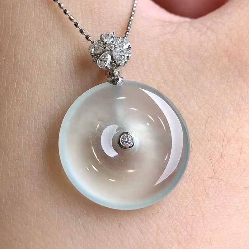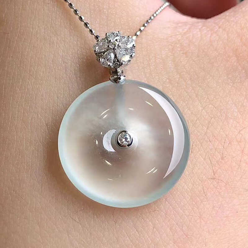 Home Necklace Jade Peace Buckle, Gold Inlaid Jade, Natural Myanmar Jade, A-grade Glass, High Ice, Strong Transparency Necklace Pendant