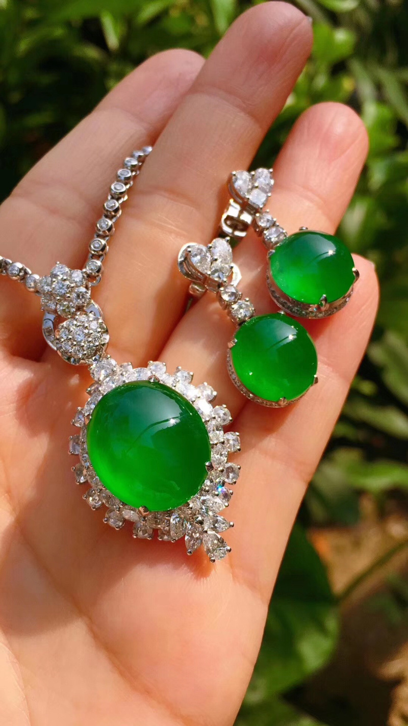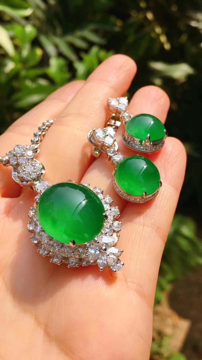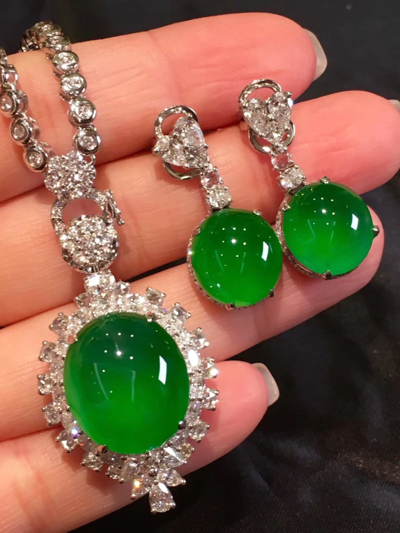 Home Necklace Jade ring, earring, nail, pendant set, ice seed, positive yang, green egg surface pendant, natural A-grade jade bracelet certificate