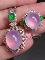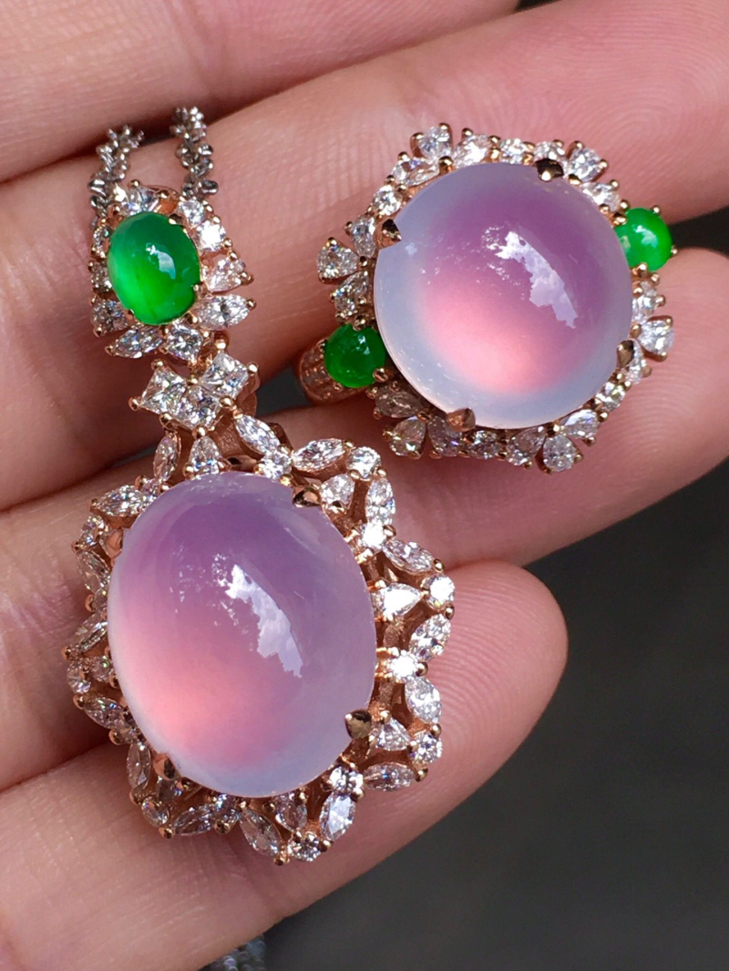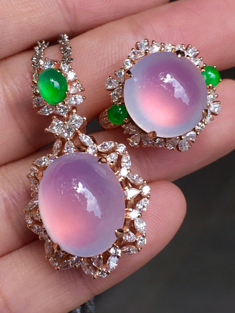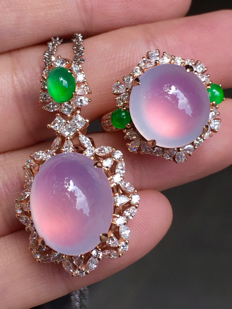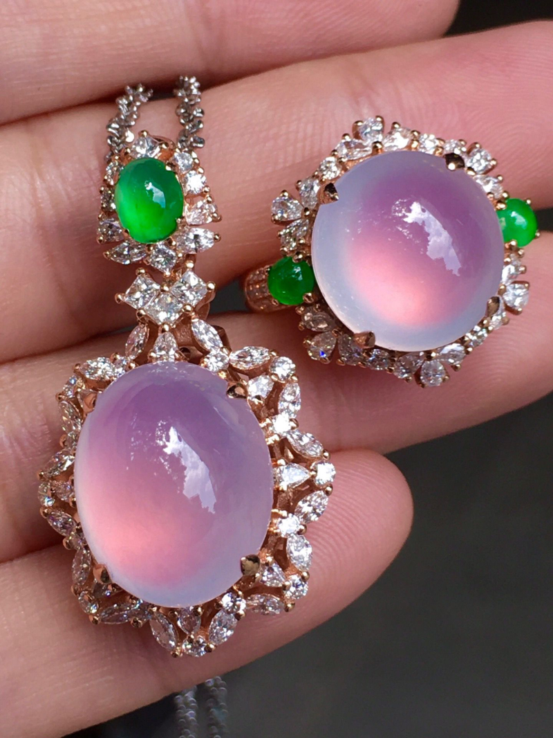 Myanmar A-grade High Ice Violet Jade Egg Pendant Ring Set 18k Gold and Jade Pendant Neck Ornament Pendant for Women