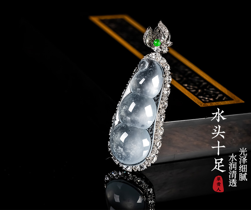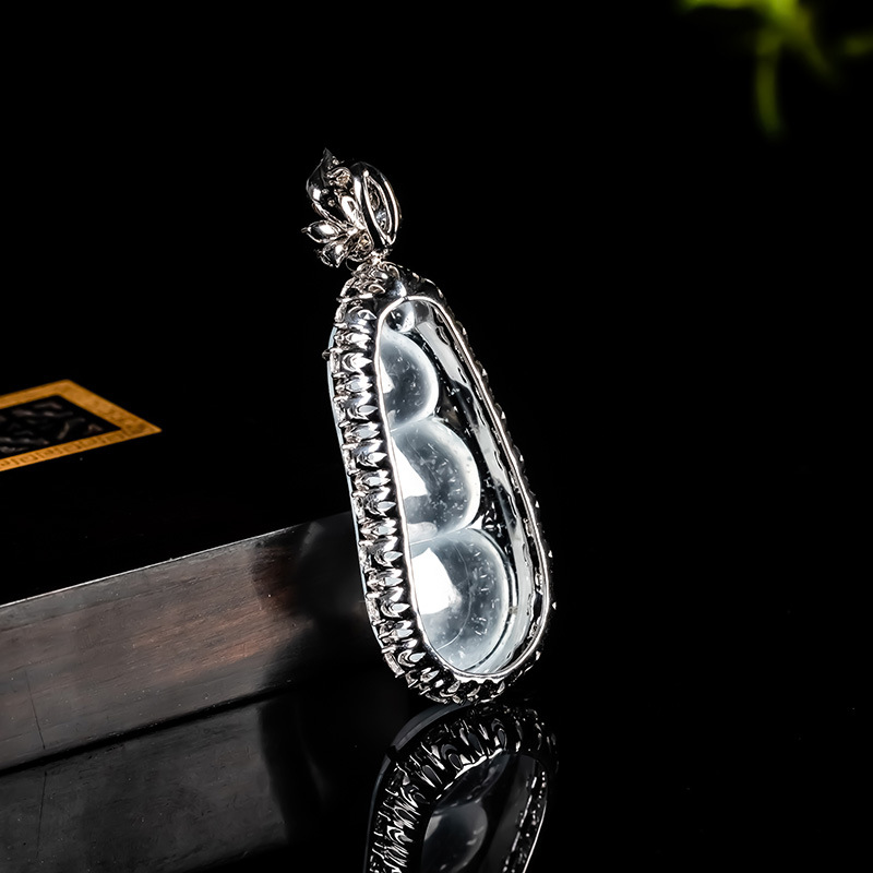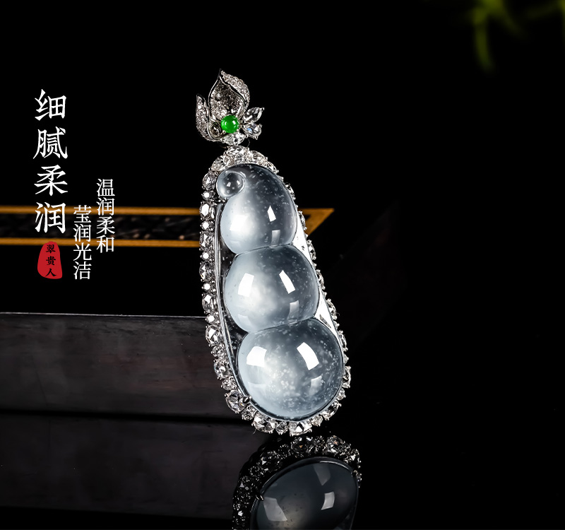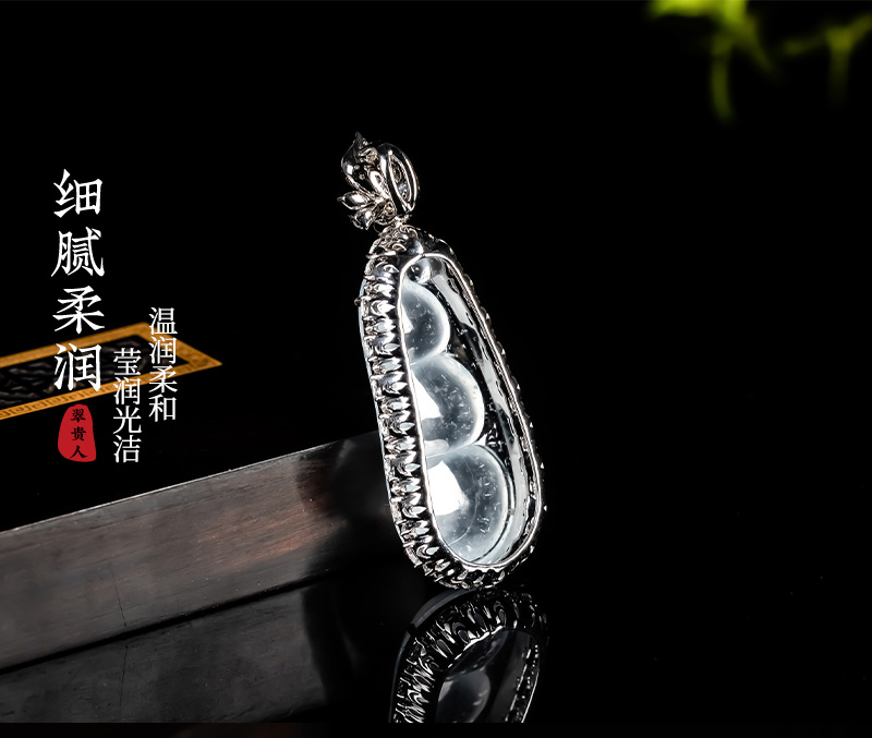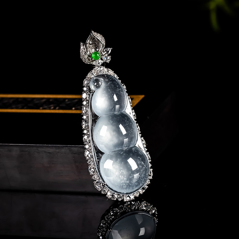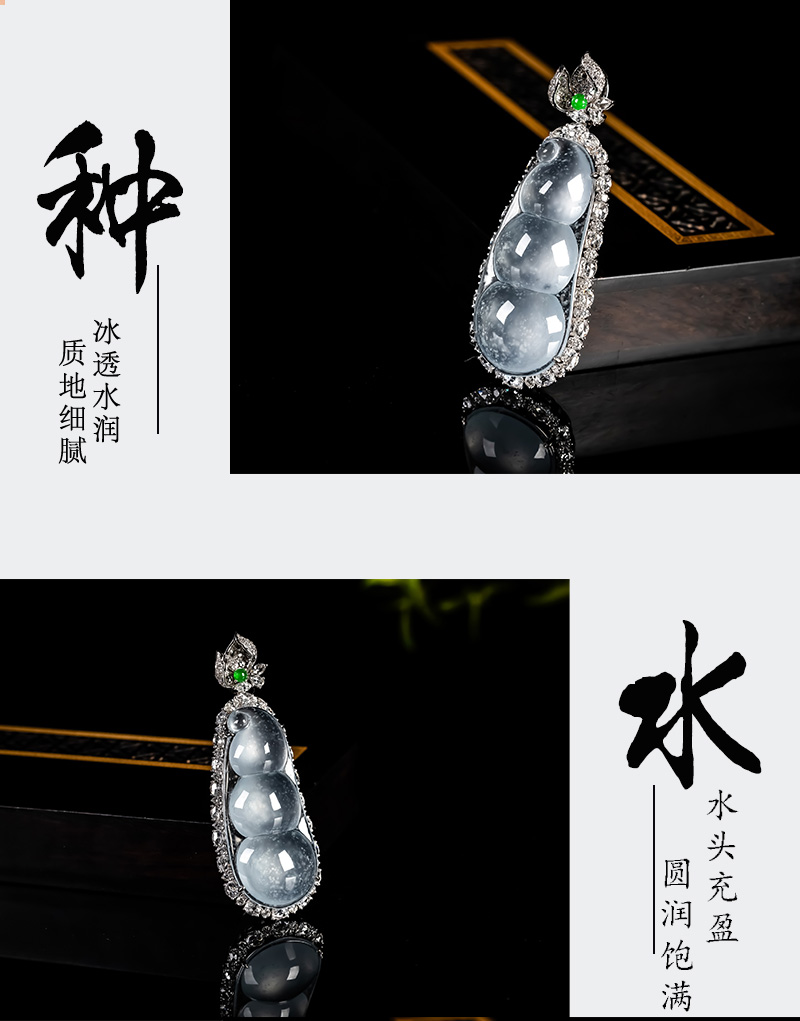 Myanmar Natural Jadeite A-grade Glass Seed Wood Snow Cotton Four season Bean Jadeite Pendant 18K Gold Ice Transparent Fortune Bean