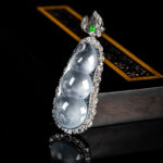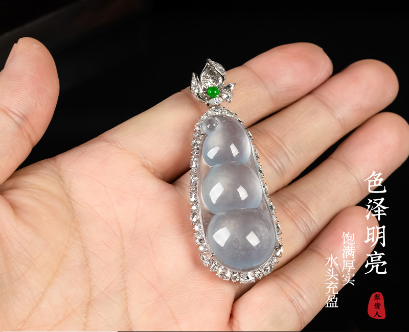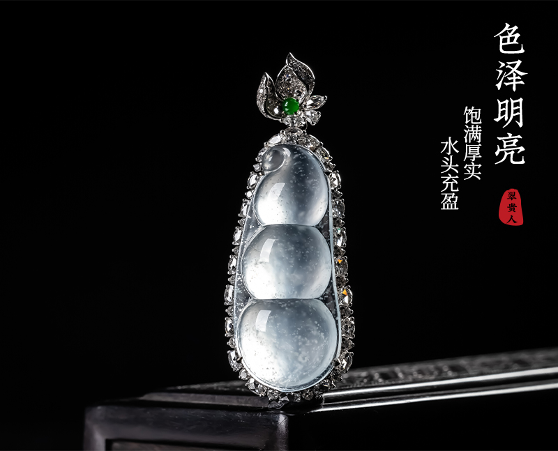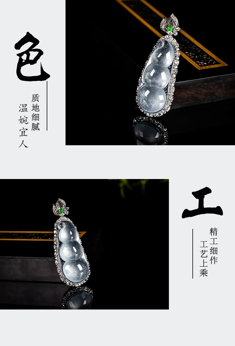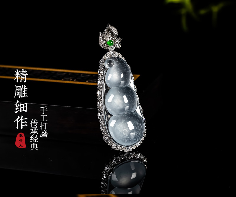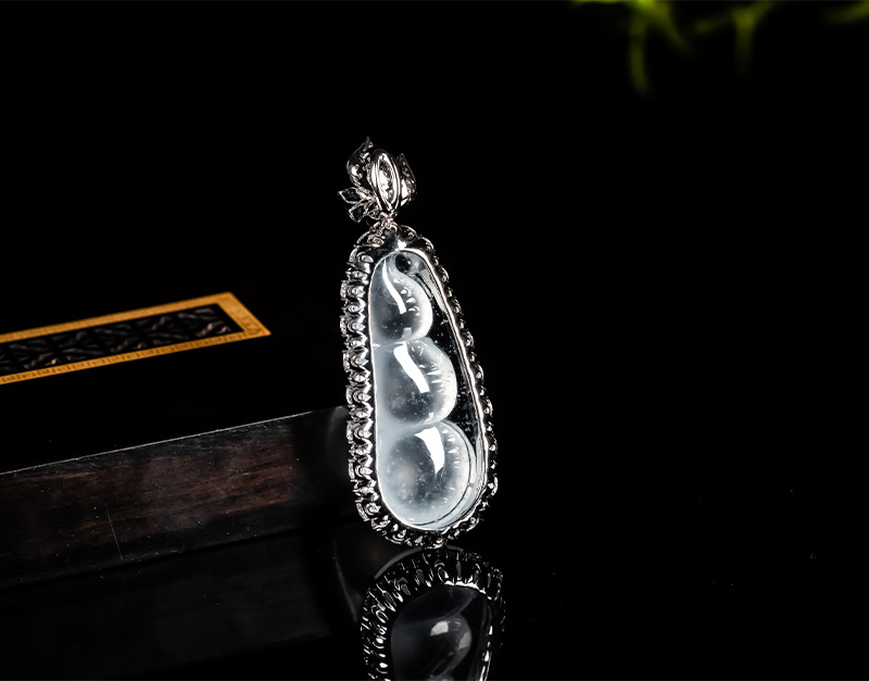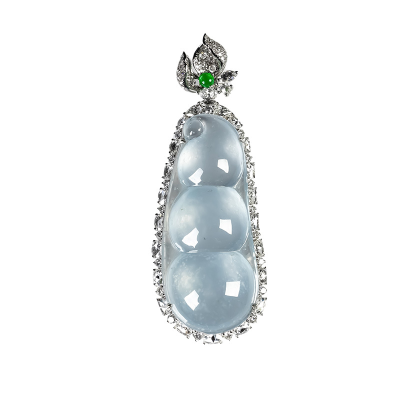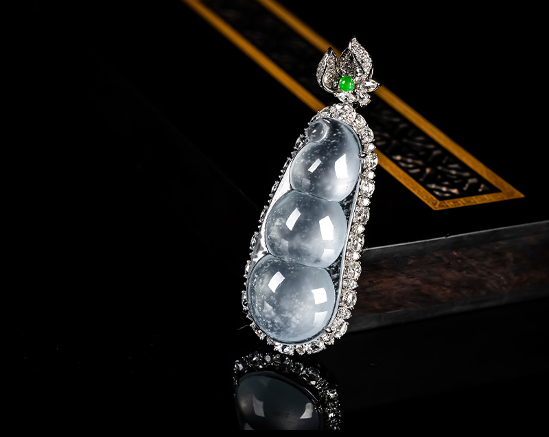 Myanmar Natural Jadeite A-grade Glass Seed Wood Snow Cotton Four season Bean Jadeite Pendant 18K Gold Ice Transparent Fortune Bean