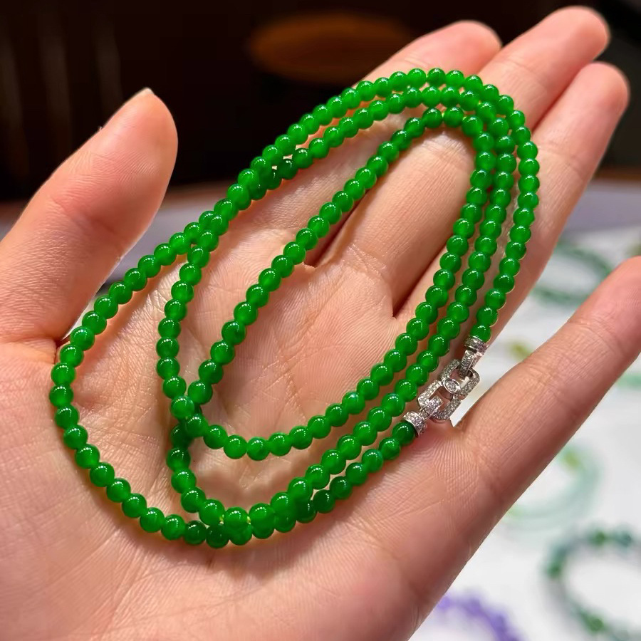 Home Necklace Natural Myanmar ice seed, Yang green jade, Xiaomi bead necklace, bracelet, A-shares, full color, Xiaomi bead necklace, star style, same item