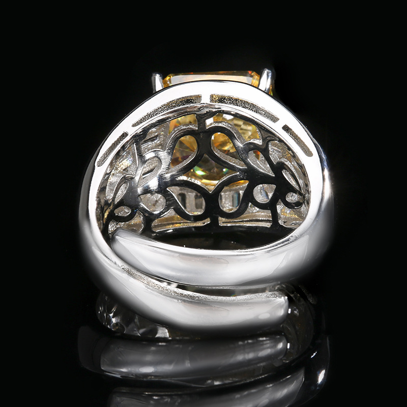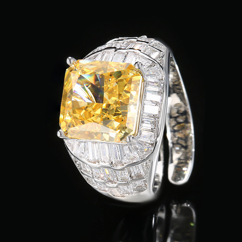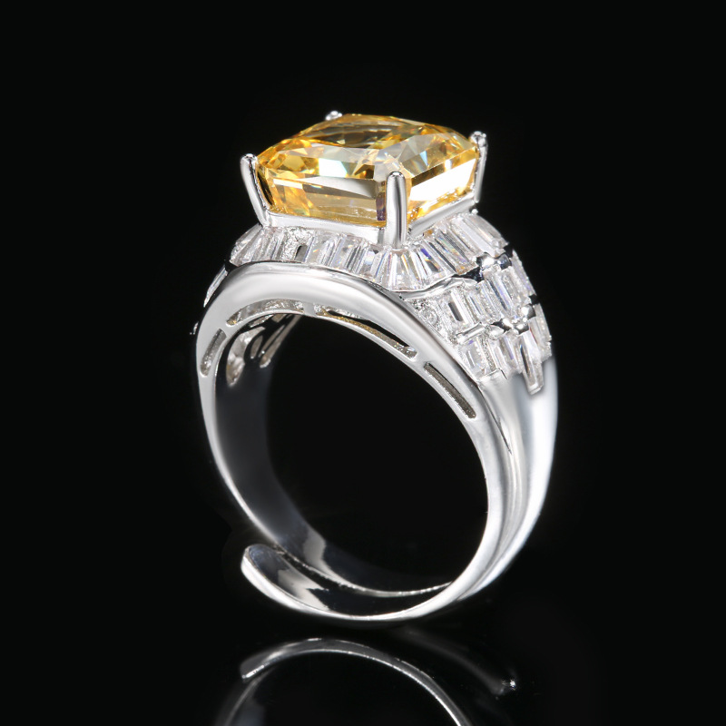 S925 Full Body S925 Color Crown Cutting Technology is popular, with high carbon content, and the main component carbon element is the same as that of real diamonds. Highly simulated diamond Redion cut closed jewelry ring with main stone of 12 * 14