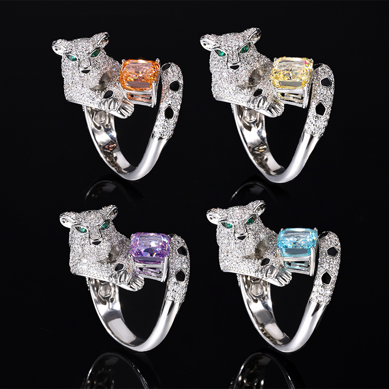 Home Ring The color gemstone cutting technology is popular, with high carbon content, and the main component carbon element is the same as that of real diamonds. Highly simulated diamond Redion cut full diamond luxurious leopard temperament ring main stone 8 * 8
