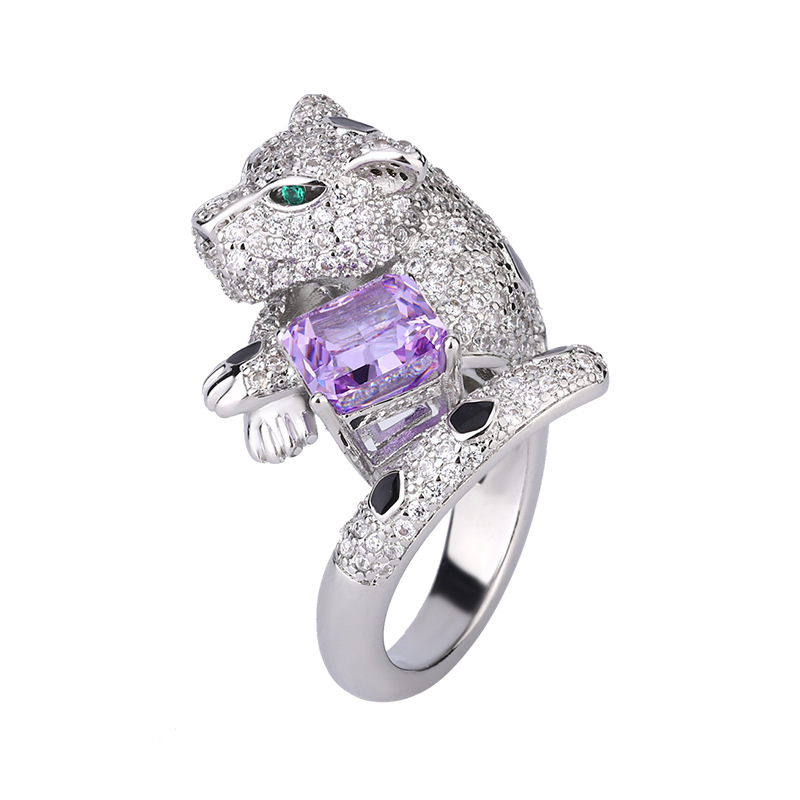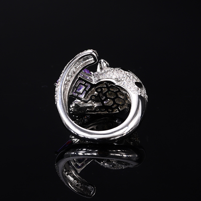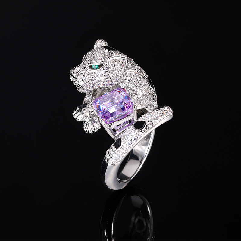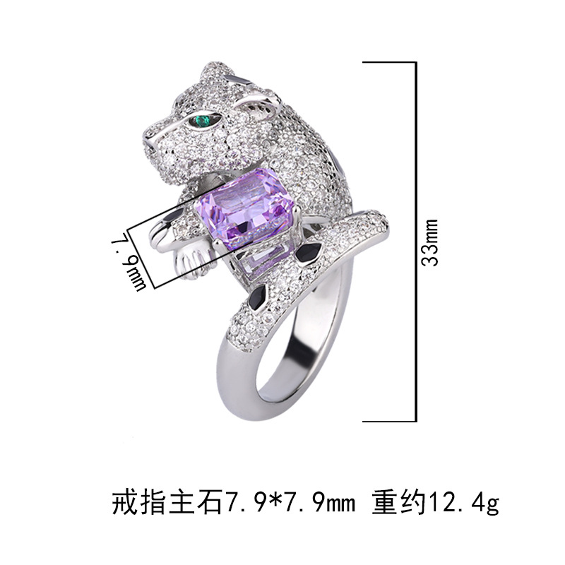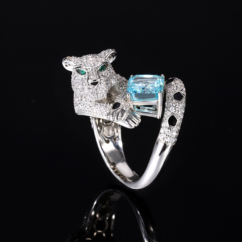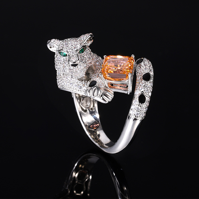 Home Ring The color gemstone cutting technology is popular, with high carbon content, and the main component carbon element is the same as that of real diamonds. Highly simulated diamond Redion cut full diamond luxurious leopard temperament ring main stone 8 * 8
