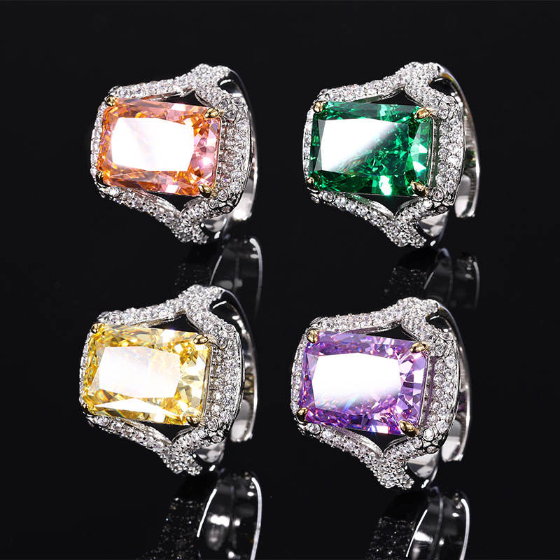 The color gemstone cutting technology is popular, with high carbon content, and the main component carbon element is the same as that of real diamonds. Highly simulated diamond Redion cutting ice flower cutting pigeon egg ring for women, size 12 * 14