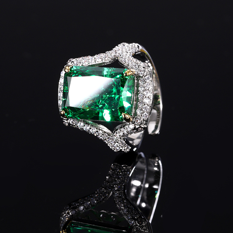 Home Ring The color gemstone cutting technology is popular, with high carbon content, and the main component carbon element is the same as that of real diamonds. Highly simulated diamond Redion cut ice flower copper inlaid temperament square diamond ring for women, size 10 * 14