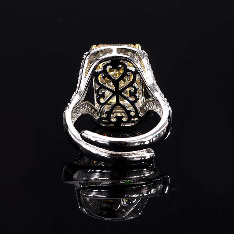 The color gemstone cutting technology is popular, with high carbon content, and the main component carbon element is the same as that of real diamonds. Highly simulated diamond Redion cutting ice flower cutting pigeon egg ring for women, size 12 * 14