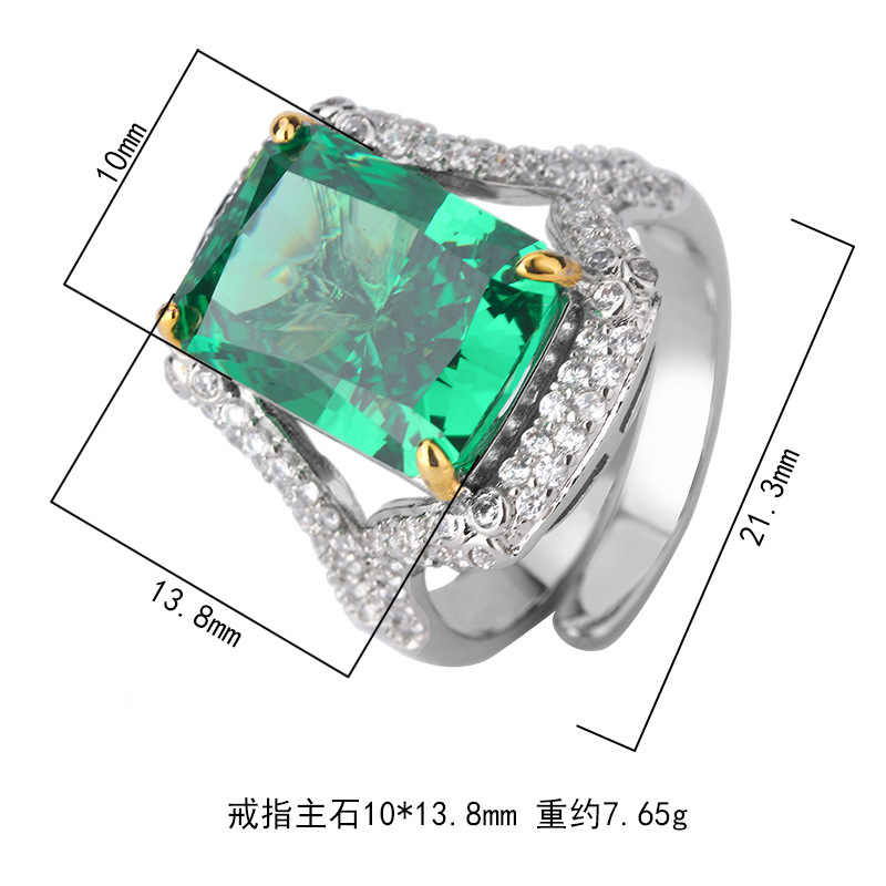 The color gemstone cutting technology is popular, with high carbon content, and the main component carbon element is the same as that of real diamonds. Highly simulated diamond Redion cut ice flower copper inlaid temperament square diamond ring for women, size 10 * 14