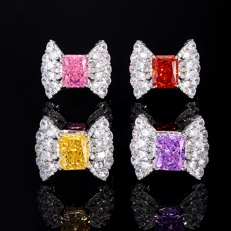 Ice Flower Cut Purple Diamond Ring, Ice Flower Cut Yellow Diamond Ring, Ice Flower Cut Chinese Red Ring, Ice Flower Cut Deep Pink Ring |