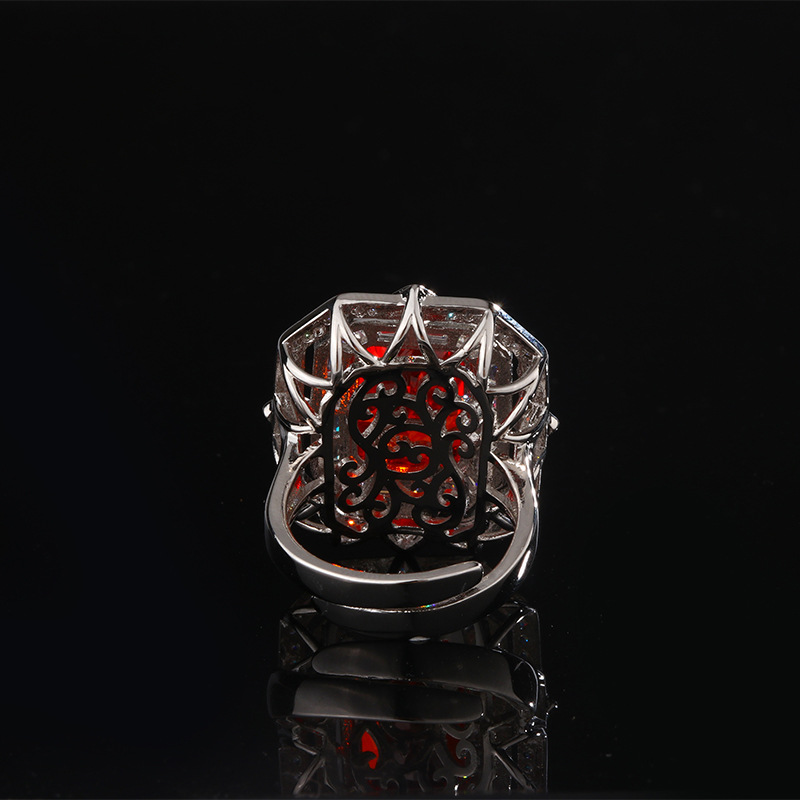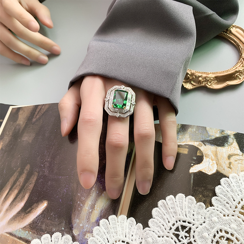 Home Ring The color gemstone cutting technology is popular, with high carbon content, and the main component carbon element is the same as that of real diamonds. Highly simulated diamond Redion cut ice flower square diamond copper inlaid temperament light luxury square diamond ring for women 10 * 14